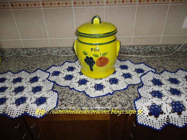 Muito alegre este conjunto e o enfeite também.É um modelo que a minha mãe também fazia e vou ver se ela ainda tem algum por casa. Temos de aceitar que do antigo vieram lindíssimos trabalhos.