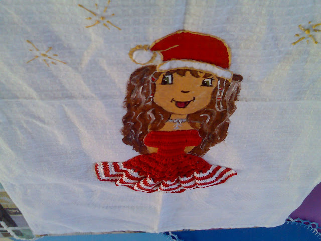 Lindas bonecas pintadas à mão e vestidas em croché. E porque a epóca está a chegar, vamos decorar a casa com encantadores motivos de Natal. Este pano com a bonequinha vai ficar fantástico, não acham?!